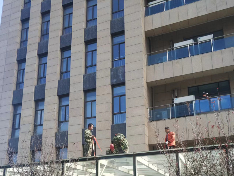 奉賢區檢測中心雨棚玻璃更換施工現場照。
