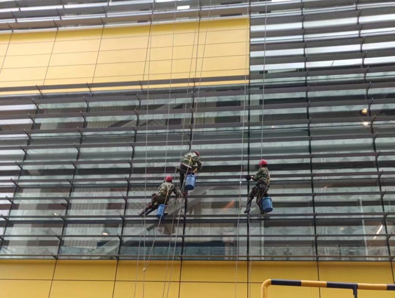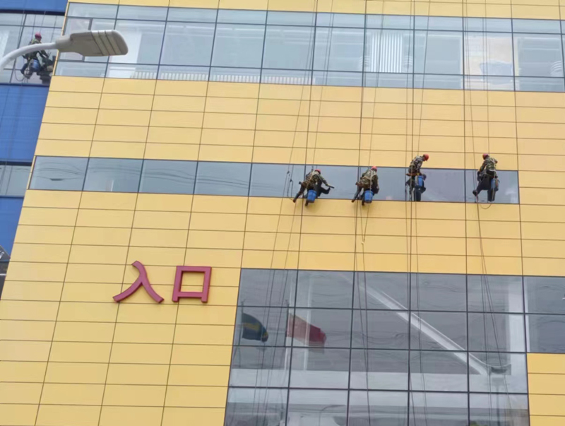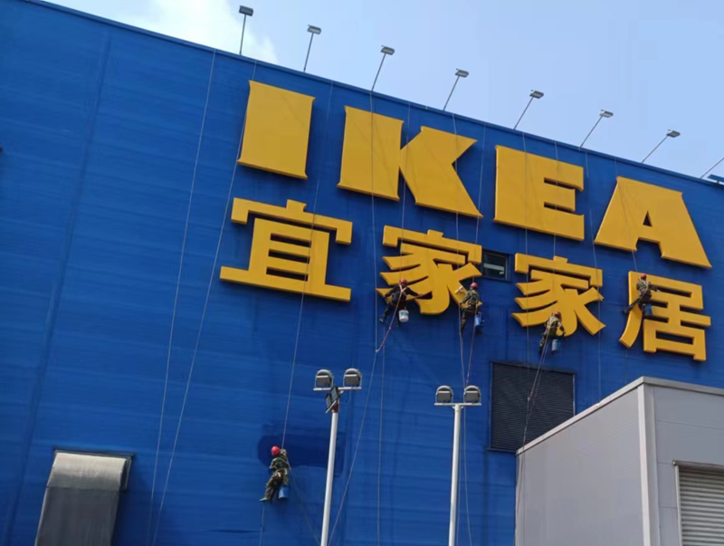 外墻清洗項目:宜家家居(上海北蔡商場)位于浦東新區臨御路臨御路550號,宜家北蔡商場設有環保實踐展間,在環保實踐展間中,宜家家居向顧客提供可持續家居生活的靈感,從廚房、客廳、臥室三個主要房間去展示如何在家降低能源消耗,減少碳排放。除此之外,宜家北蔡商場的特點還在于從運營上致力于最大程度減少碳排放。宜家家居(上海北蔡商場)外墻清洗施工現場照片。